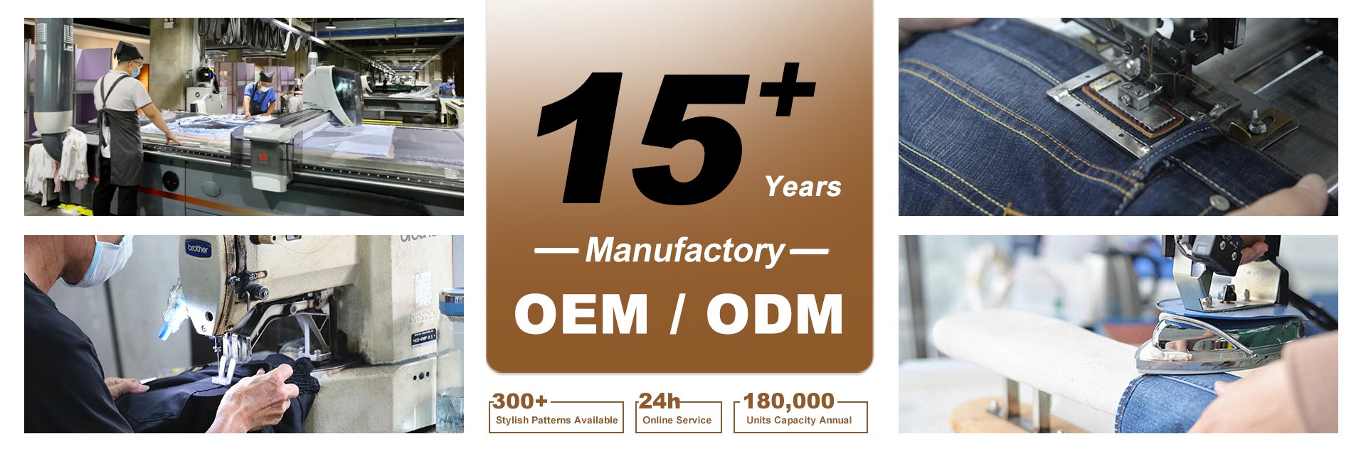 Direct Factory:We start the production of jeans garment from 2010 and start overseas business from 2024, equipped with 5 production lines, 3 inspection lines and more than 120 experienced workers.